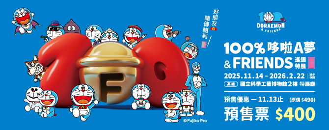 《100%哆啦A夢&FRIENDS》全球巡迴展南下高雄!深受大小朋友喜愛的哆啦A夢與他的好友們再次齊聚於高雄,這次更帶著特別祕密道具─「100%朋友召喚鈴」,邀請各位朋友們一同玩樂,現場將展出眾多造型立體雕塑、複製原畫手稿以及多種沉浸式場景,還將重現藤子・F・不二雄老師的復刻工作室,以及各種充滿無限想像力的神奇道具,帶領大家與哆啦A夢共同創造美好回憶。