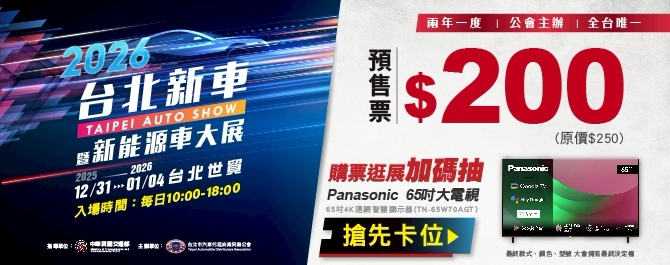 兩年一度、全台唯一由公會主辦的台北車展,2025/12/31-2026/01/04 盛大登場!